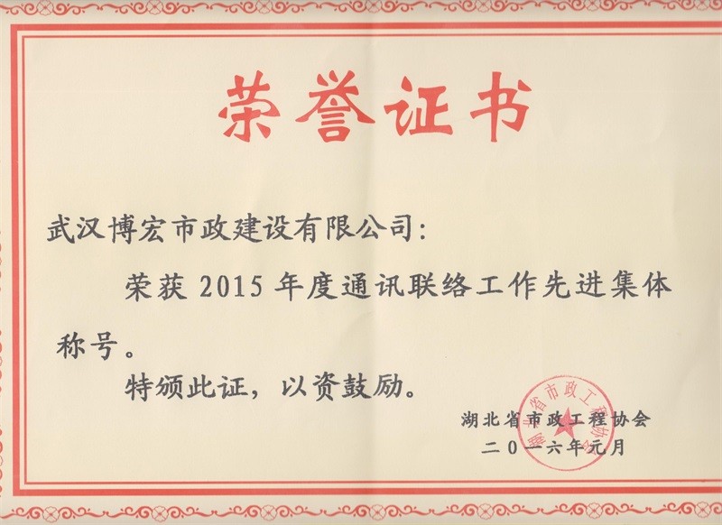 2015年度通訊聯(lián)絡(luò)工作先進(jìn)集體稱號(hào)